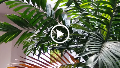 This morning, I noticed that birds around our garden chirped louder than usual. The birds let out distressing sound, I could tell as it was more high pitch than usual. I soon realized that there were a couple of black feathered Mynahs flying around between the palm trees nearby our home and our garden. They looked busy courting. I think the Bulbul felt threatened and had to defend its eggs. It was not in its nest when I did a quick check. I thought it went looking for food but then I saw it flying around the same area as the Mynahs, perhaps trying to chase away the latter. After 3-5 minutes of commotion, the Mynahs flew away to another area. At the moment, the eggs are safe.
